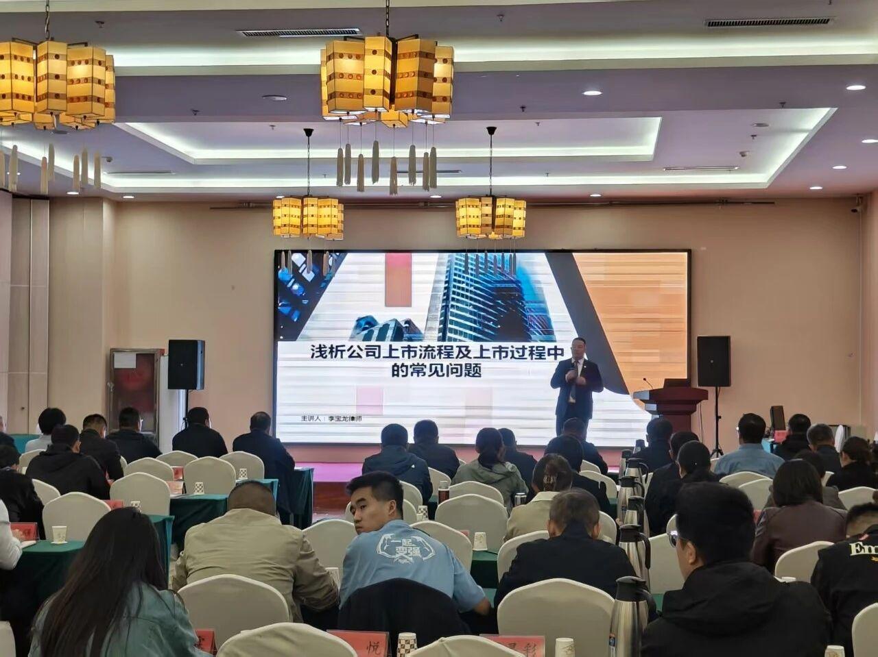 本次培訓旨在提升當地財政金融系統干部、企業家及相關從業人員的資本市場專業知識與實務能力。李寶龍律師憑借其在公司、涉外及資本市場法律事務領域的深厚積淀,圍繞中國多層次資本市場結構、各板塊(主板、科創板、創業板、北交所)上市核心條件、IPO全流程關鍵節點、公司治理規范、股權架構設計與員工激勵等核心議題,進行了系統而深入的講解。